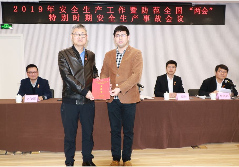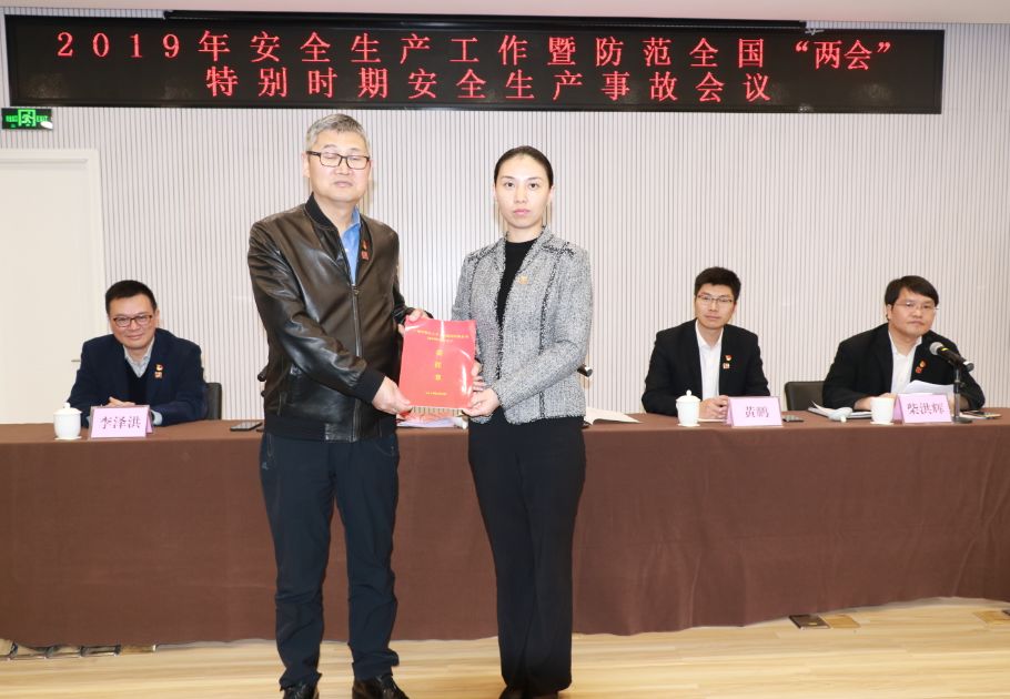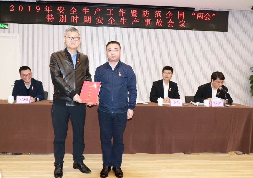 在會議現場,集團各部室、子公司負責人依次到主席臺前向集團黨委書記陳永品遞交了2019年安全生產責任書,對本責任單位的2019年的安全生產工作下了“軍令狀”。