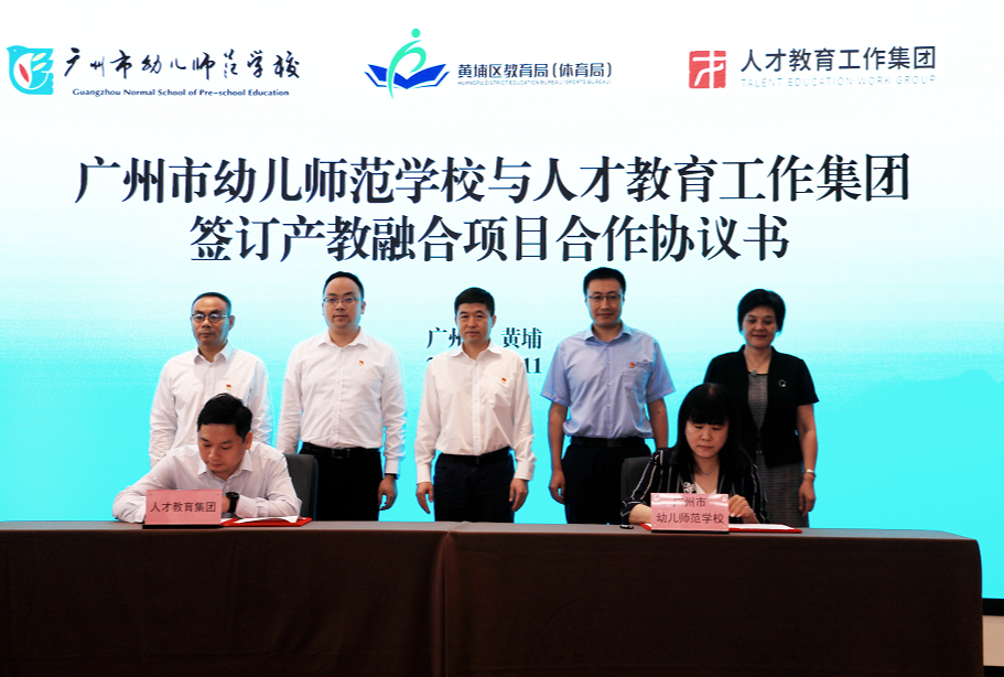 5月11日上午,在廣州開發區管委會劉石副主任、廣州市教育局職成處李營處長、黃埔區教育局何宇鴻局長、黃埔區衛生健康局宋曉漪局長、廣州開發區人才教育工作集團王叢立董事長的見證下,廣州開發區人才教育工作集團肖任迪總經理與廣州市幼兒師范學校丘毅清校長簽訂產教融合項目合作協議,正式掛牌共建“學前教育實訓基地”、“早教托育實訓基地”。