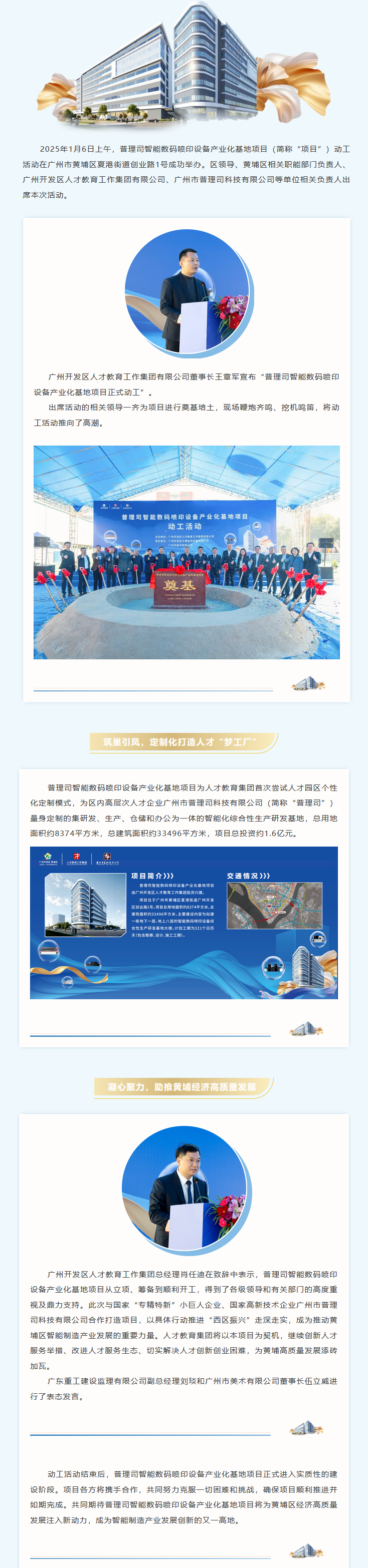 同心筑夢 智造啟航|熱烈祝賀普理司智能數碼噴印設備產業化基地項目正式動工